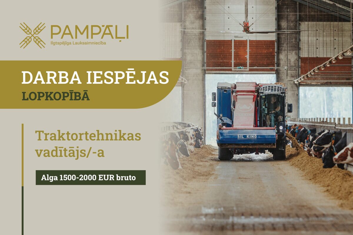 Aicinām darbā TRAKTORTEHNIKAS VADĪTĀJU LOPKOPĪBĀ